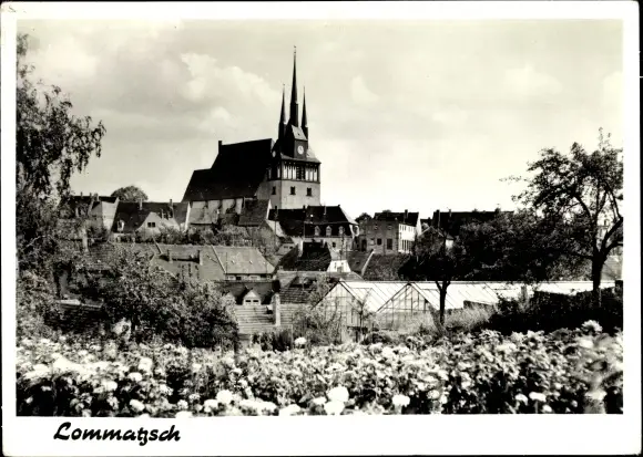 Ak Lommatzsch in Sachsen, Teilansicht mit Kirche