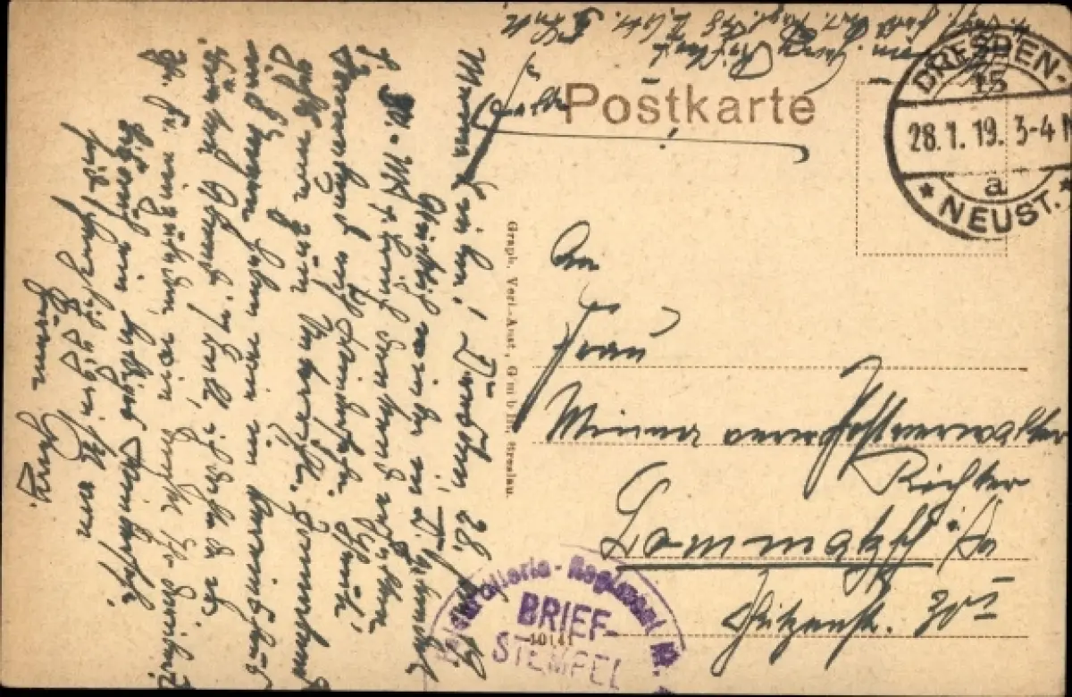 Zustand, siehe Scan, gelaufen, 1919 - ca 14 cm X 9 cm