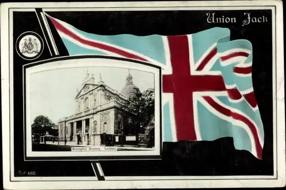 Ak London City England, Brompton Oratory, Union Jack, Flagge