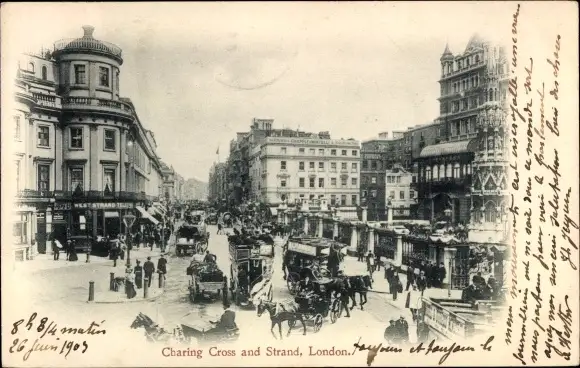 Ak London City England, Charing Cross and Strand, Bahnhof