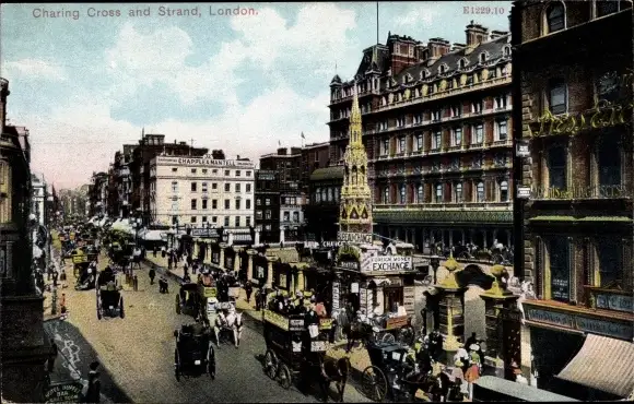 Ak London City England, Charing Cross and Strand, Kutschen