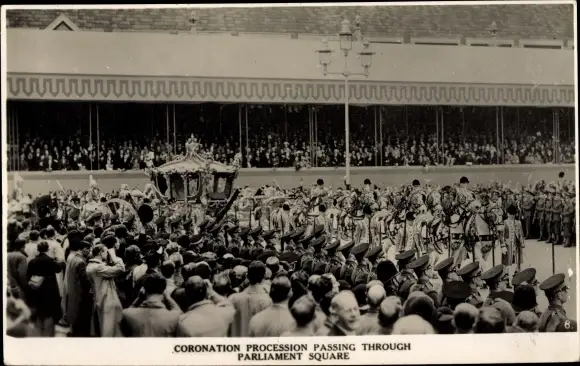 Ak London City England, Coronation Procession passing through Parliament Square