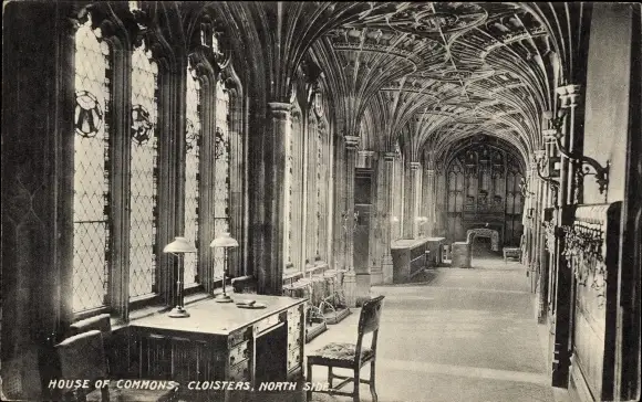 Ak London City England, House of Commons, Cloisters, North Side, Innenansicht