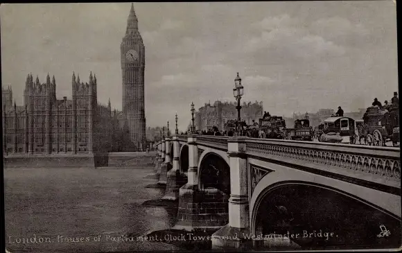 Ak London City England, Houses of Parliament, Clock Tower and Westminster Bridge