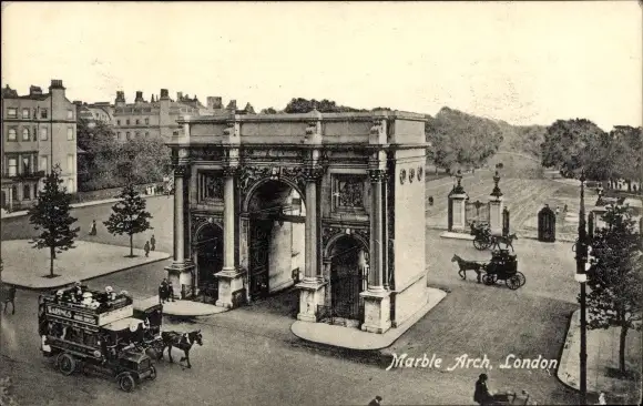 Ak London City England, Marble Arch, Torbogen, Platz, Pferdekutschen, Auto