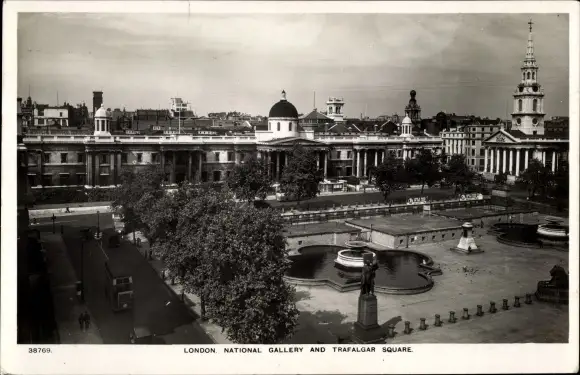 Ak London City England, National Gallery and Trafalgar Square