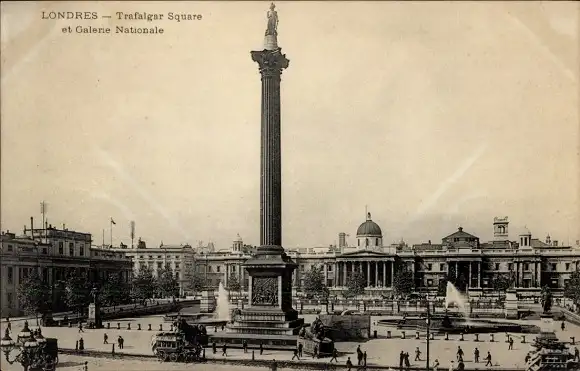 Ak London City England, Nationalgalerie, Trafalgar Square, Nelson Monument