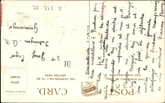 Zustand, siehe Scan, gelaufen, 1912 - ca 9 cm X 14 cm
