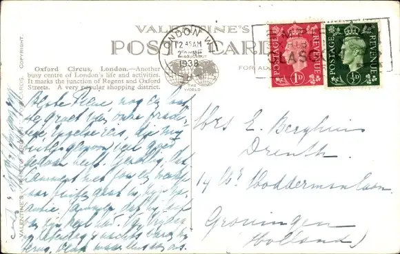 Zustand, siehe Scan, gelaufen, 1938 - ca 14 cm X 9 cm