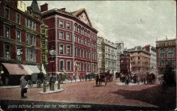 Ak London City England, Queen Victoria Street and the Times Office