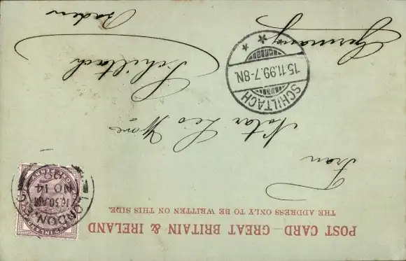 Zustand, siehe Scan, gelaufen, 1899 - ca 13 cm X 8 cm