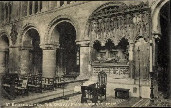 Ak London City England, St. Bartholomäus der Große, Prior-Raheres-Grab