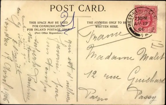 Zustand, siehe Scan, gelaufen, 1906 - ca 14 cm X 9 cm