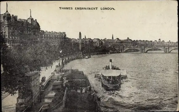 Ak London City England, Thames Embankment, Ausflugsschiff