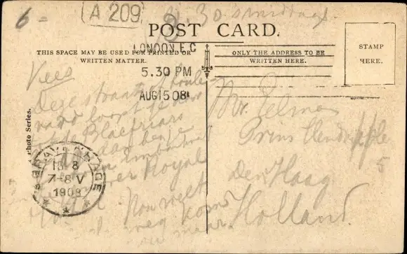 Zustand, siehe Scan, gelaufen, 1908 - ca 14 cm X 9 cm