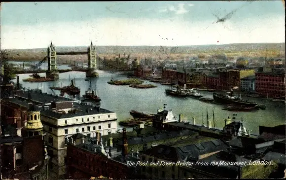 Ak London City England, The Pool and Tower Bridge from the Monument