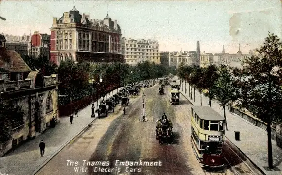 Ak London City England, Themse-Ufer