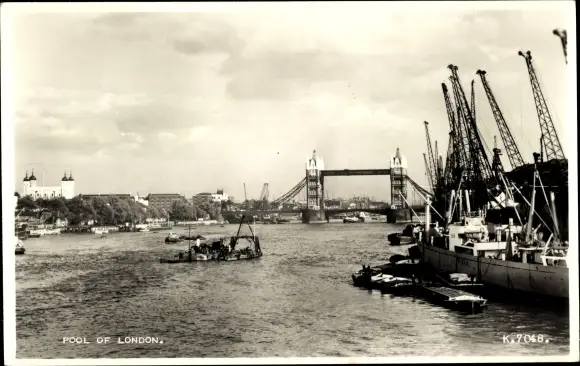 Ak London City England, Tower Bridge, Pool of London