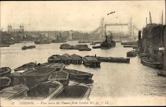 Ak London City England, Tower Bridge, Thames from London Bridge