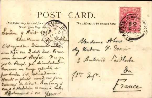 Zustand, siehe Scan, gelaufen, 1908 - ca 14 cm X 9 cm