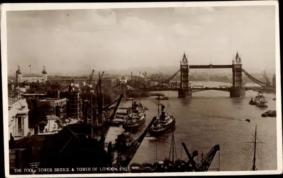 Ak London City England, Tower Bridge, The Pool, Tower of London