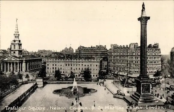 Ak London City England, Trafalgar Square, Nelson Monument, St. Martins Kirche