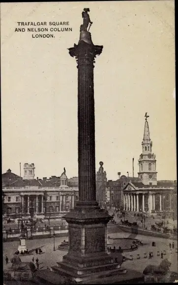 Ak London City England, Trafalgar Square and Nelson Column
