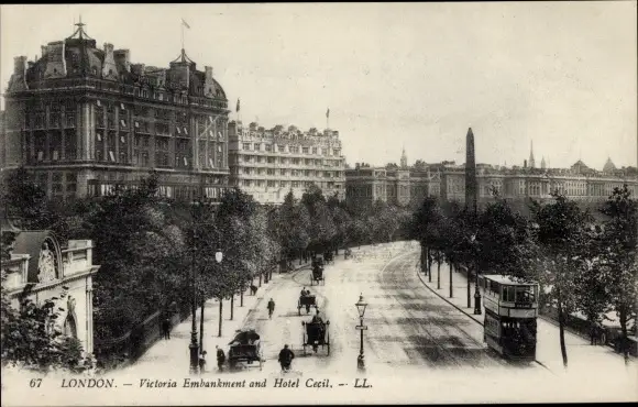 Ak London City England, Victoria Embankment and Hotel Cecil