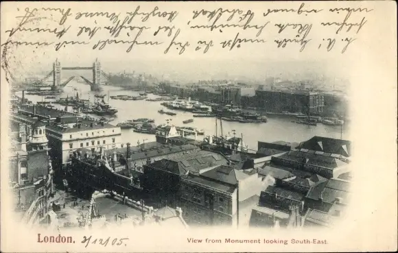 Ak London City England, View from Monument looking South East, Tower Bridge