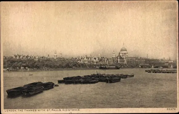Ak London City England, the Thames with St. Paul's in Distance, Panorama