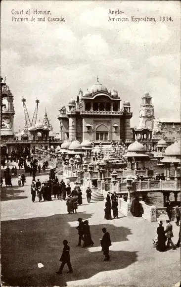 Ak London England, Anglo American Exposition 1914, Court of Honour, Promenade and Cascade