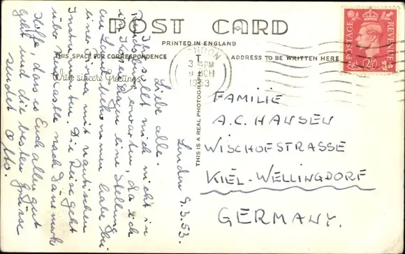 Zustand, siehe Scan, gelaufen, 1953 - ca 14 cm X 9 cm