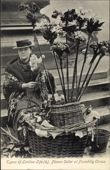 Ak London England, Types of London Life, Flower Seller at Piccadilly Circus