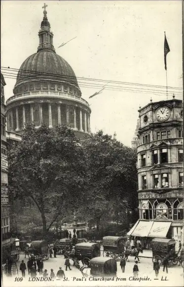 Ak London, general view of St. Paul's Churchyard from Cheapside