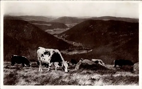 Ak Longemer Lothringen Vosges, Gesamtansicht, Hügel, Kühe