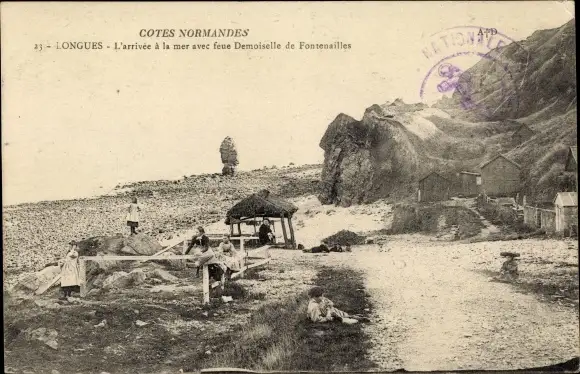 Ak Longues Calvados, L'arrivee a la mer avec feue Demoiselle de Fontenailles