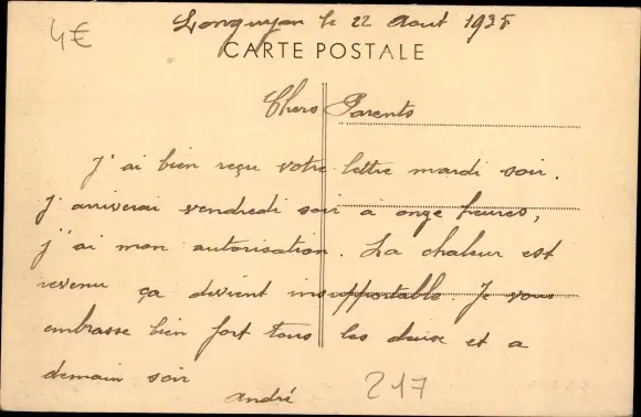 Zustand, siehe Scan, ungelaufen, 1935 - ca 14 cm X 9 cm