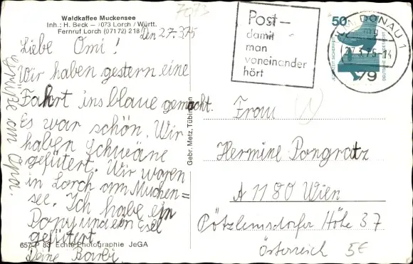 Zustand, siehe Scan, gelaufen, 1975- Inh.: H. Beck - ca 14 cm X 9 cm