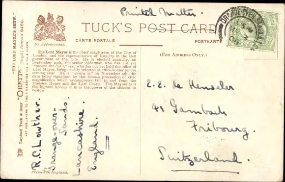 Zustand, siehe Scan, gelaufen, 1908- Tuck 9456 - ca 14 cm X 9 cm