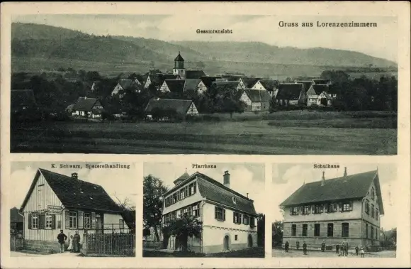 Ak Lorenzenzimmern Vellberg in Württemberg, Spezereienhandlung, Pfarrhaus, Schulhaus