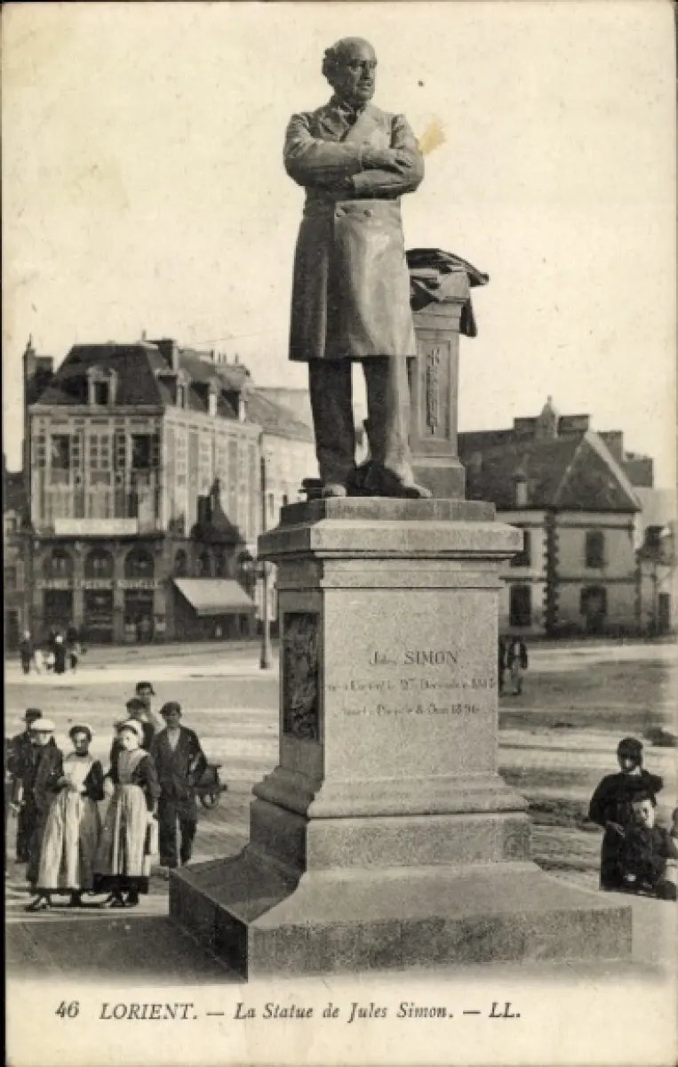 Ak Lorient Morbihan, Statue von Jules Simon, Stadtansicht, Menschen auf dem Platz