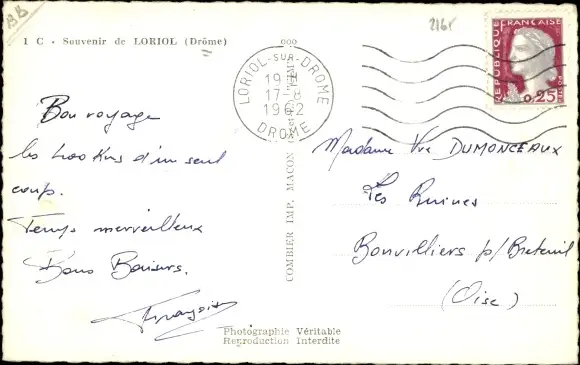 Zustand, siehe Scan, gelaufen, 1962 - ca 14 cm X 9 cm