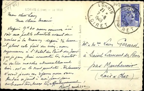 Ak Lorris Loiret, Le Mail, Hôtel Café