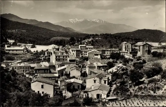 Ak Los Limites Le Perthus Pyrénées Orientales, Barrio frances y el pico del Canigo, Panorama