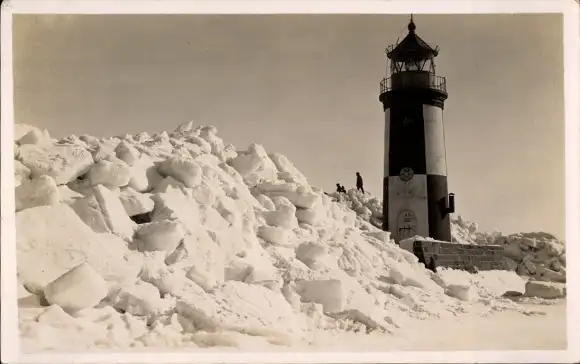 Ak Lotseninsel Schleimünde Kappeln an der Schlei, Leuchtturm, Schneelandschaft