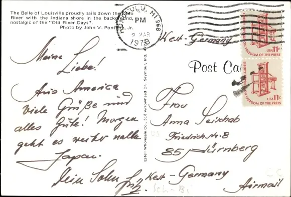 Ak Louisville Kentucky USA, Belle of Louisville, Indiana shore in the background