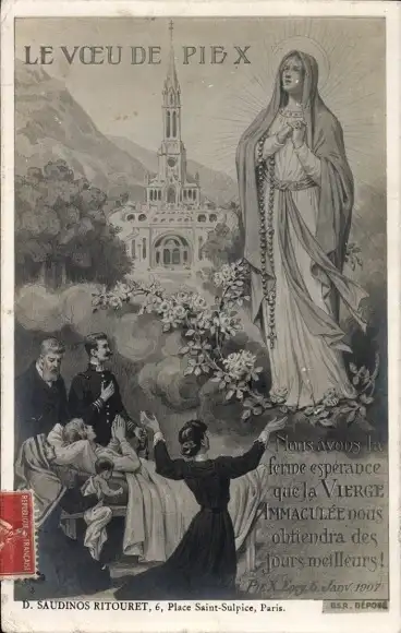 Ak Lourdes Hautes Pyrénées, Basilika, Marienerscheinung