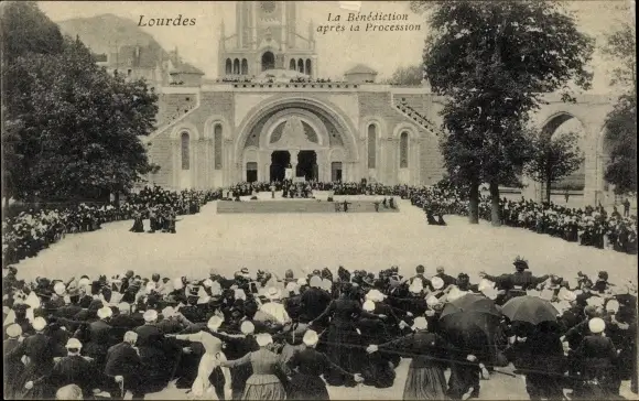 Ak Lourdes Hautes Pyrénées, Der Segen nach der Prozession