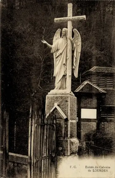 Ak Lourdes Hautes Pyrénées, Entree du Calvaire