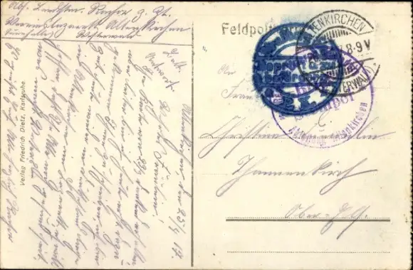 Zustand, siehe Scan, gelaufen, 1917 - ca 14 cm X 9 cm